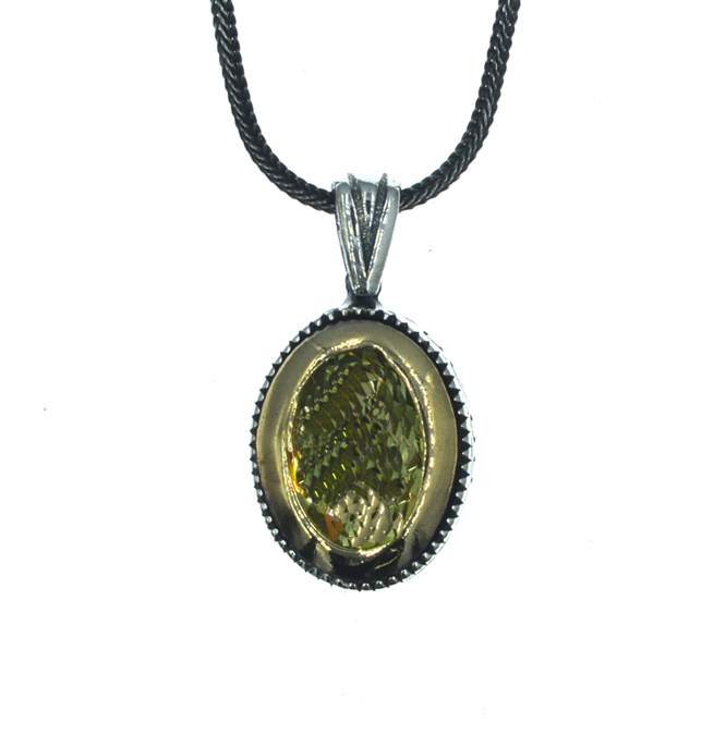 Ασημένιο 925 μενταγιόν με πράσινη ζιργκόν πέτρα και μπρούτζινο δέσιμο . Επιλέξτε και την ταιριαστή ασημένια 925 αλυσίδα 45 εκατοστών με επέκταση 5 εκατοστών.
