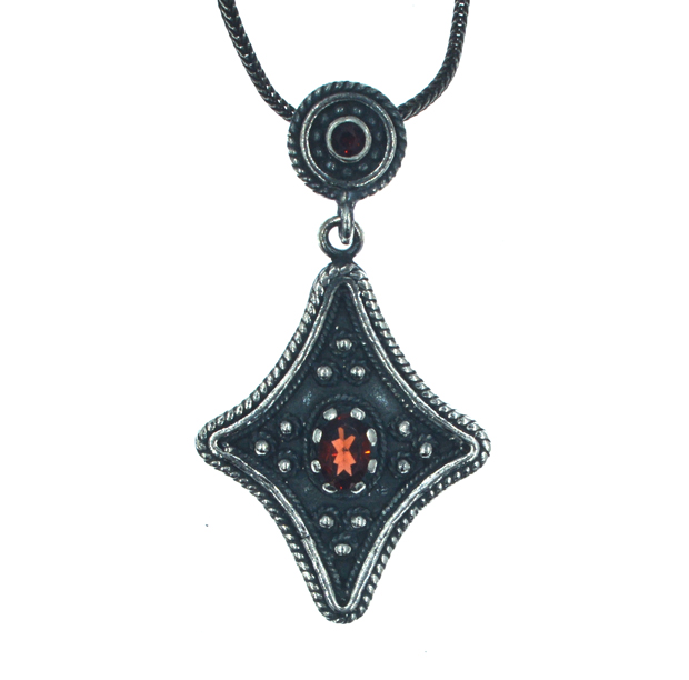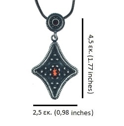 Ασημένιο 925 μενταγιόν με γρανάδα πέτρα και ασημένια αλυσίδα 45 εκατοστών με επέκταση 5 εκατοστών.
