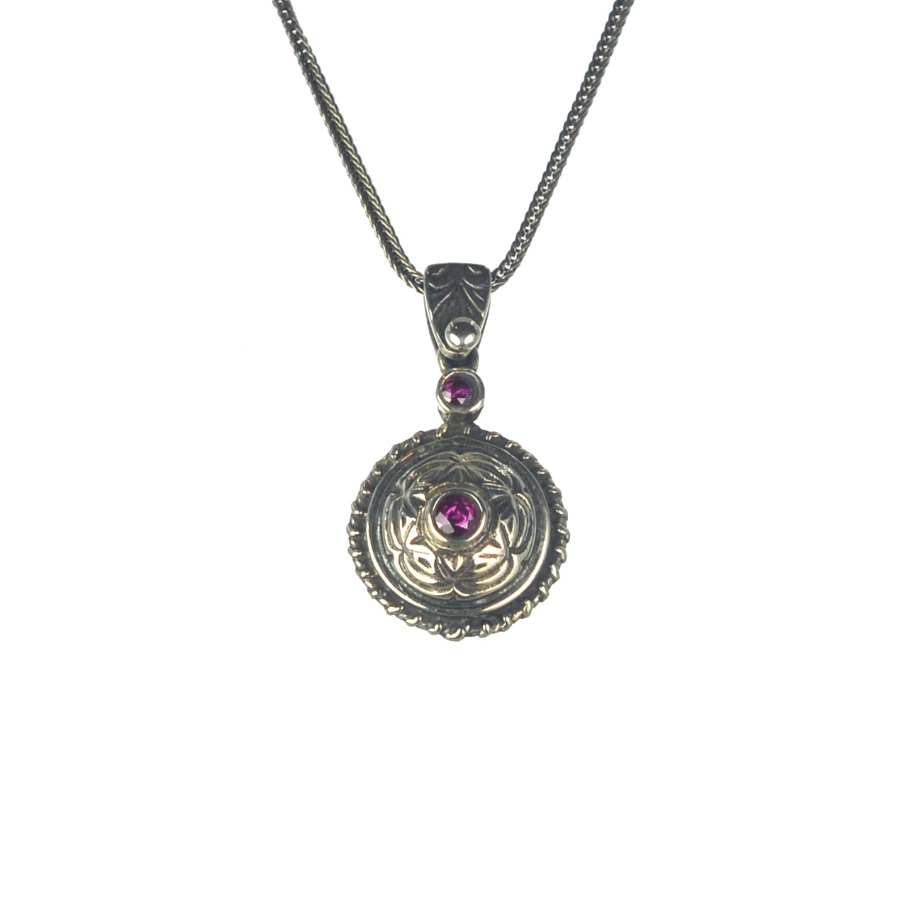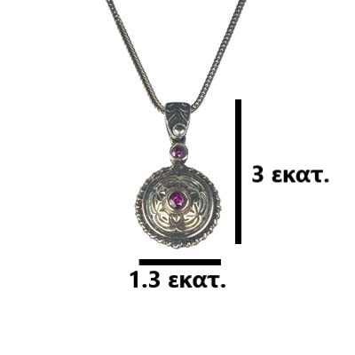 Ασημένιο 925 μενταγιόν με ροζ ζιργκόν. Χειροποίητο σκαλιστό μενταγιόν με δύο μικρές ροζ-φούξια πέτρες ζιργκόν και παραδοσιακό σχεδιασμό. Ανακαλύψτε όλη τη συλλογή με παραδοσιακά γιαννιώτικα κοσμήματα στην ιστοσελίδα μας και επιλέξτε το αγαπημένο σας! Κάντε κλικ στην επιλογή “Με αλυσίδα” για να πάρετε μαζί και μία αλυσίδα 45 εκατοστών (+ επέκταση 5 εκατοστών).