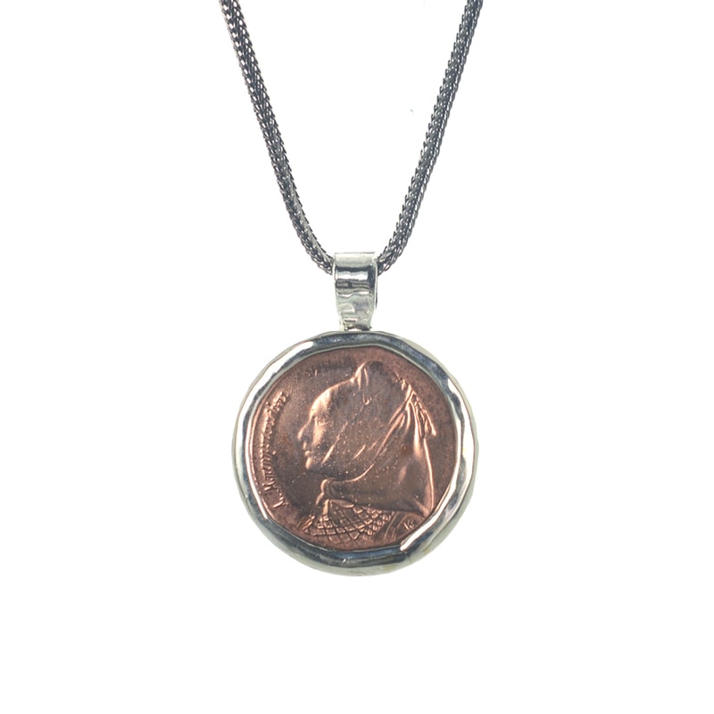 Ασημένιο 925 μενταγιόν Μπουμπουλίνα. Σκαλιστό μενταγιόν με αληθινό νόμισμα όπου απεικονίζεται η Μπουμπουλίνα, μία από τις σημαντικότερες αγωνίστριες της Ελληνικής Επανάστασης του 1821. Ιδιαίτερο μενταγιόν που θα σας θυμίζει ένα σημαντικό κομμάτι της ιστορίας μας! Από τη συλλογή “Ελευθερία” της Silver Family Moschos. *Επιλέξτε και την ασημένια 925 αλυσίδα των 45 εκατοστών με επέκταση 5 εκατοστά.
