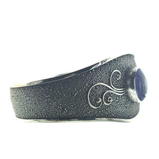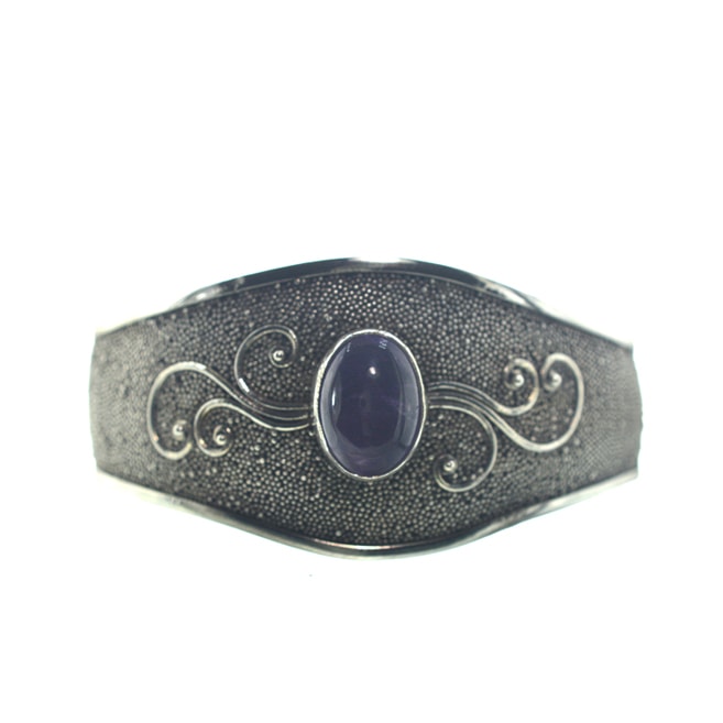 Ασημένιο 925 μονοκόμματο βραχιόλι με αμέθυστο. Παραδοσιακό σκαλιστό χειροποίητο βραχιόλι με αμέθυστο. Ασκώντας μικρή πίεση με το χέρι σας στο συγκεκριμένο βραχιόλι μπορείτε να το προσαρμόσετε στο χέρι σας (μικραίνοντας ή μεγαλώνοντας την διάμετρο του). Αυτό μπορεί να επιτευχθεί καθώς μια από τις ιδιότητες του ασημιού είναι η ευκαμψία του!