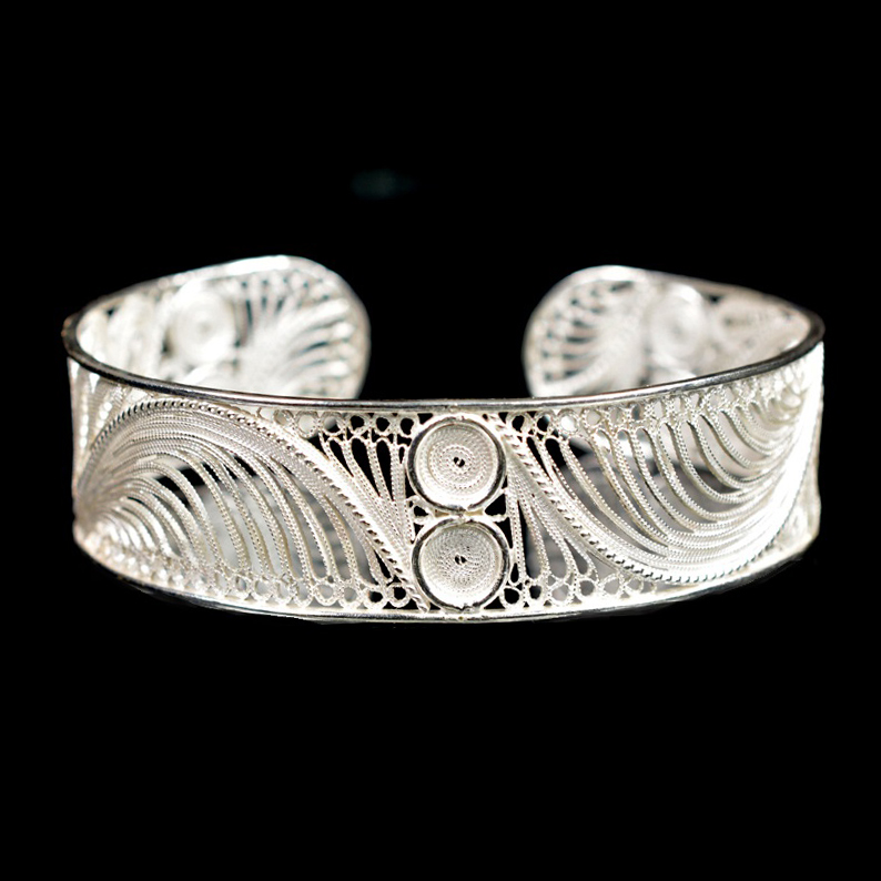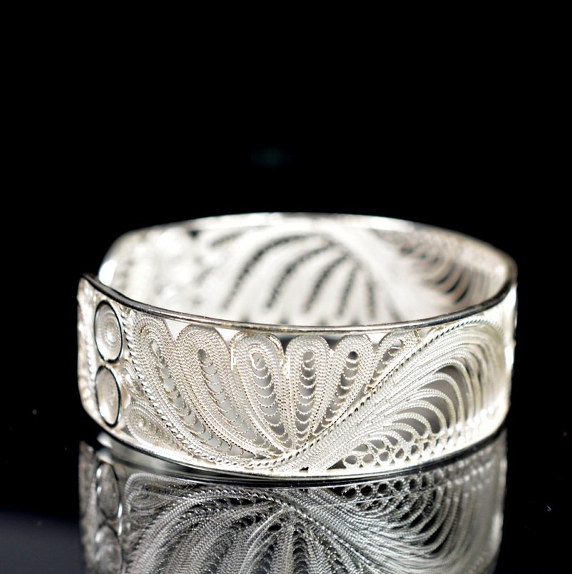 Ασημένιο 925 μονοκόμματο βραχιόλι με υψηλή τεχνική φιλιγκράν. Χειροποίητο βραχιόλι με κλασικό, παραδοσιακό σχεδιασμό για ιδιαίτερες περιστάσεις.
