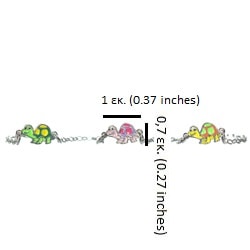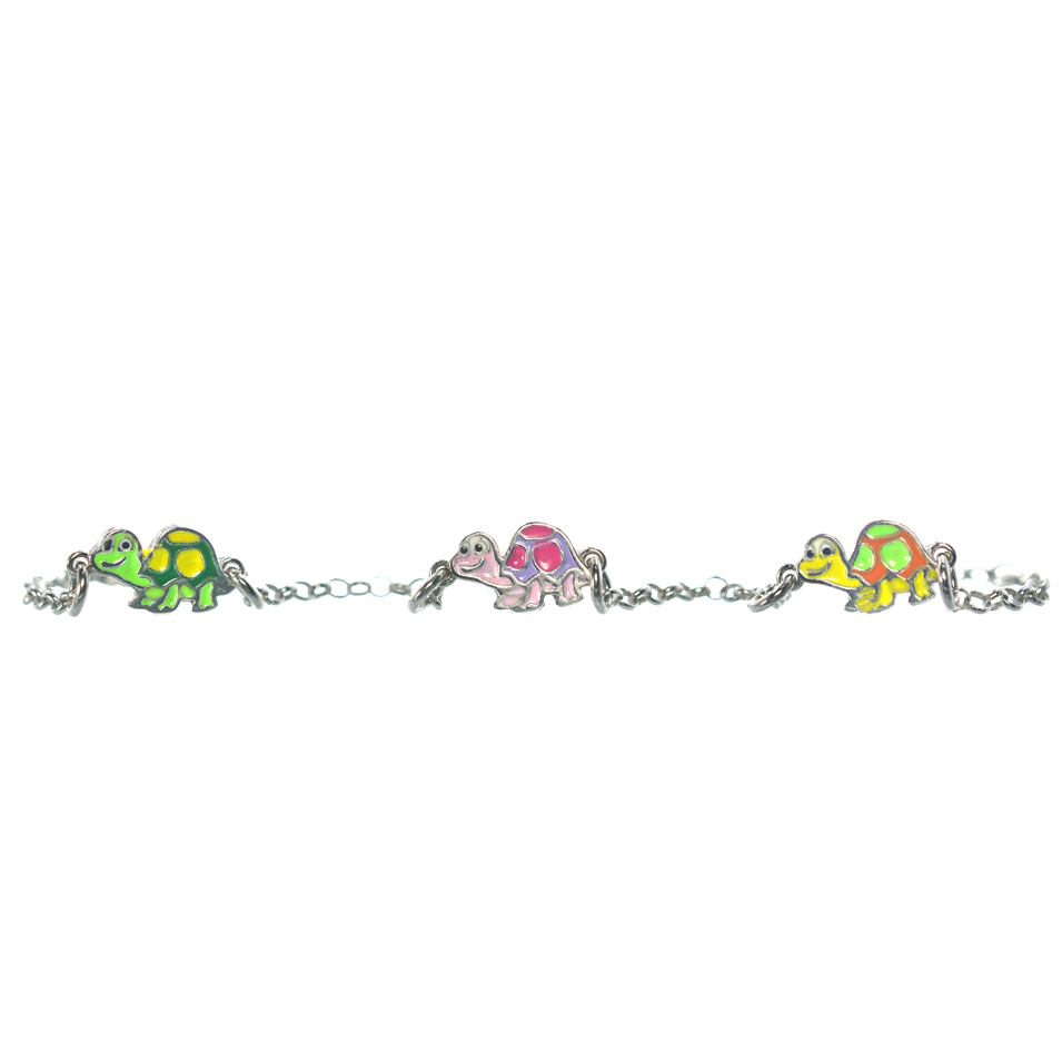 Ασημένιο 925 παιδικό βραχιόλι με χελωνίτσες από σμάλτο και επίστρωση πλατίνας για αποφυγή οξείδωσή τους ! Το μήκος του βραχιολιού είναι 18 εκατοστά ωστόσο μπορεί να κουμπωθεί σε οποιοδήποτε σημείο του . Παιδικά κοσμήματα που δώσουν χαρά στα παιδιά σας .