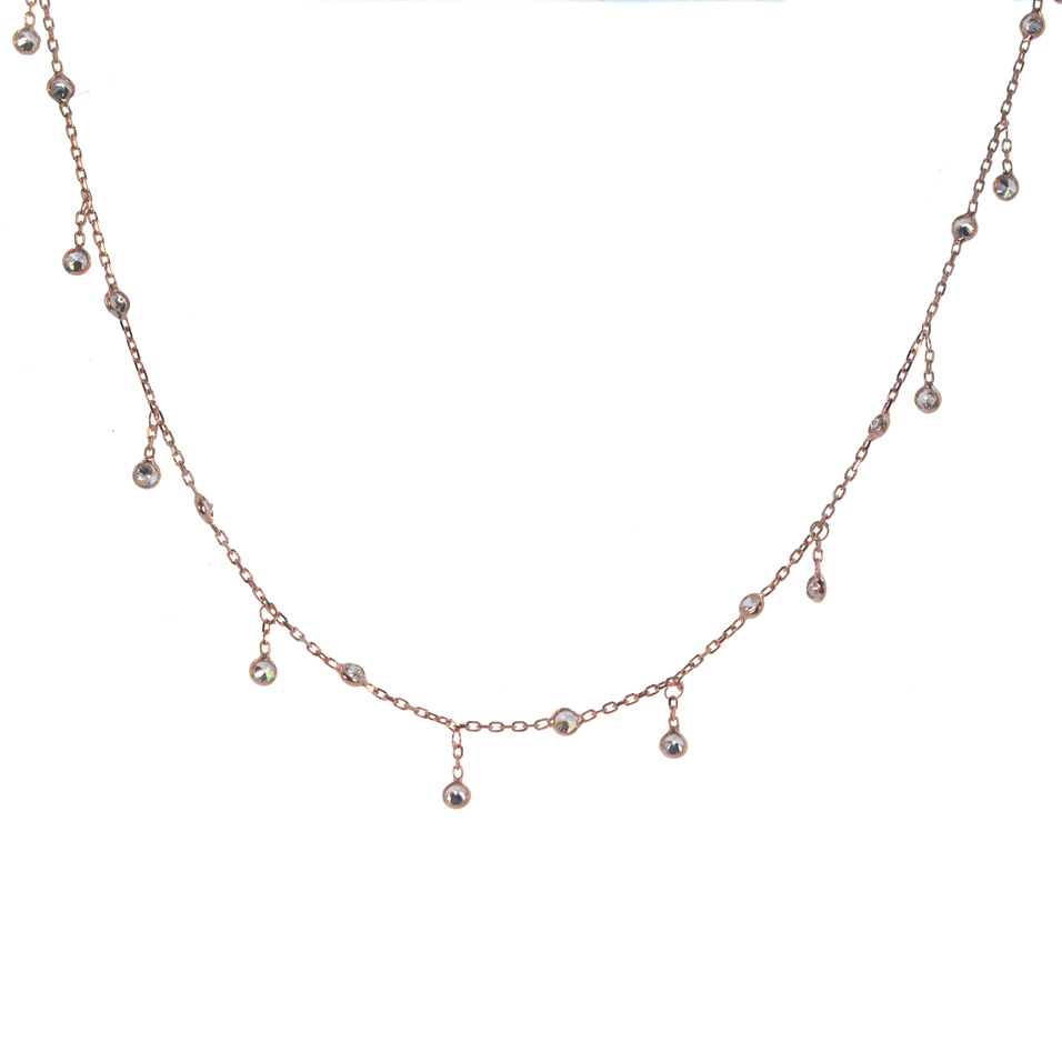 Silverfamily, Αλυσίδα, Κολιέ, Νεές αφίξειςΑσημένιο 925 ρόζ χρυσό κολιέ με λευκές πέτρες