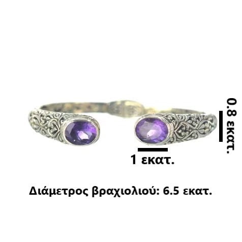 Ασημένιο 925 σκαλιστό βραχιόλι με μωβ ζιργκόν. Χειροποίητο βραχιόλι με κλασικό, παραδοσιακό σχεδιασμό, κατάλληλο για κάθε ώρα της ημέρας. Ανακαλύψτε όλη τη συλλογή και επιλέξτε το αγαπημένο σας.