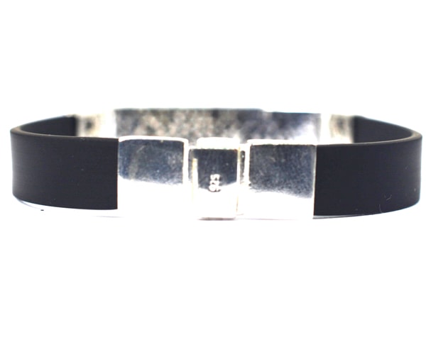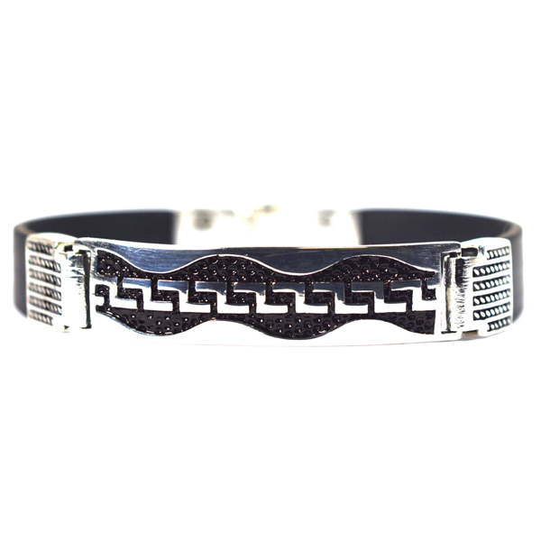 Ασημένιο 925 σκαλιστό ανδρικό βραχιόλι χεριού με καουτσούκ. Ιδιαίτερο βραχιόλι για casual περιστάσεις.