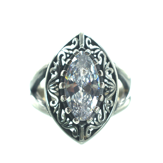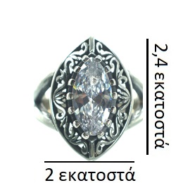 Ασημένιο 925 σκαλιστό δαχτυλίδι με ζιργκόν