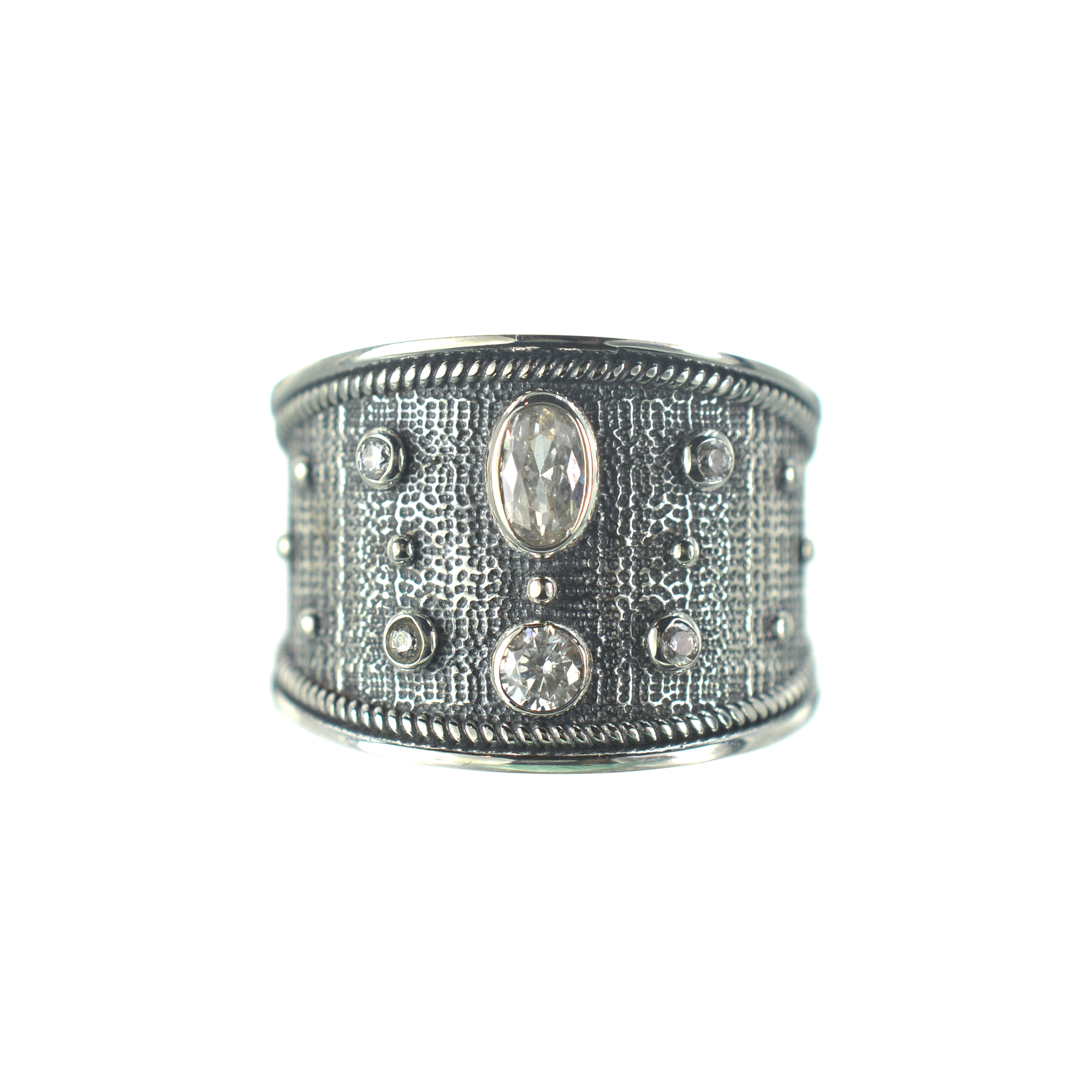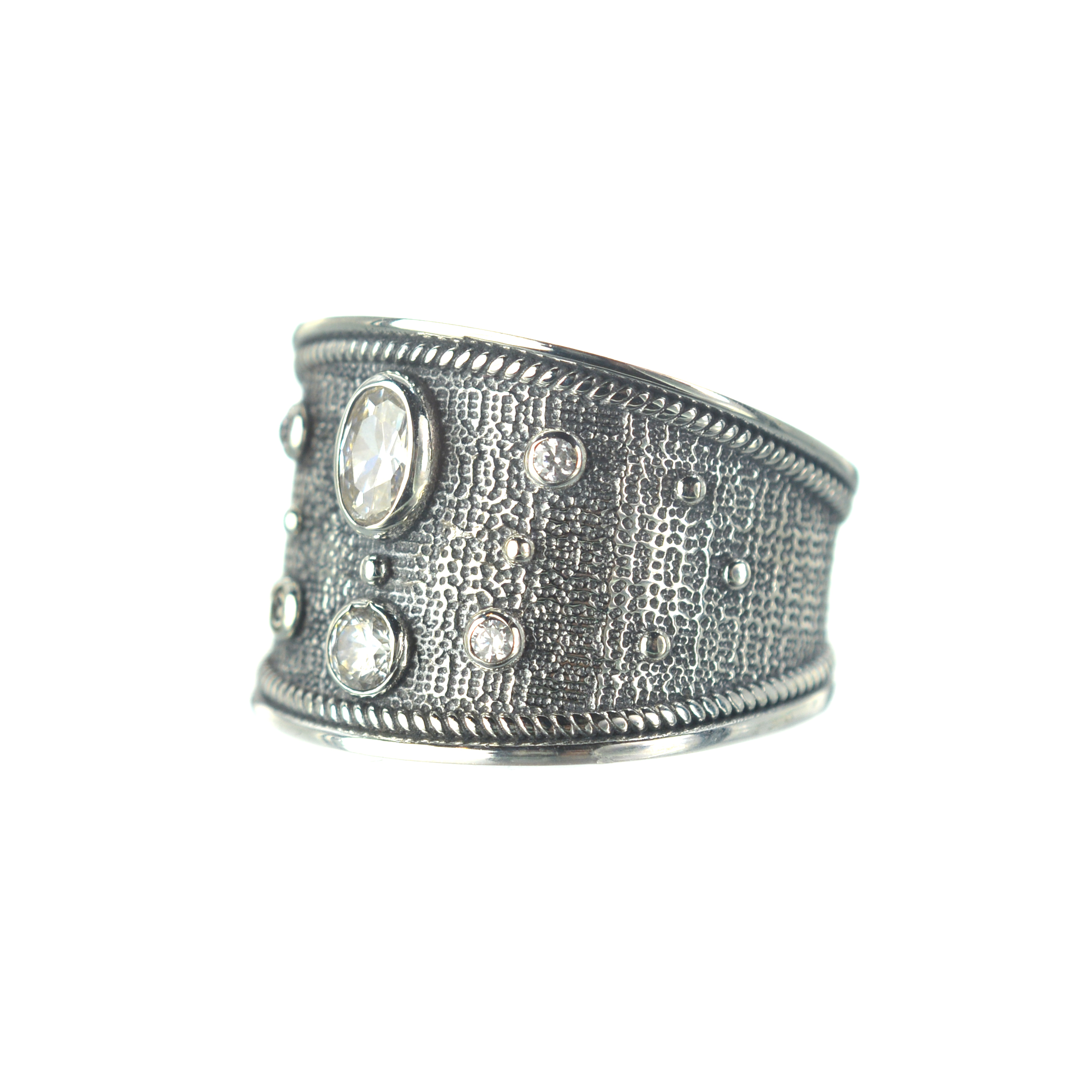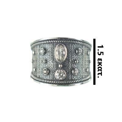 Ασημένιο 925 σκαλιστό δαχτυλίδι με πέτρες ζιργκόν