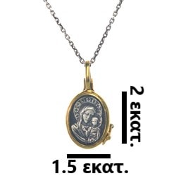 Ασημένιο 925 φυλαχτό με την Παναγία και τον Χριστό. Σκαλιστό μενταγιόν με υποδοχή για φυλαχτό, κατάλληλο για άντρες και γυναίκες. Επιλέξτε την επιλογή ‘με αλυσίδα’ για να πάρετε μαζί και την αλυσίδα 40 εκατοστών (+5 εκατοστά επέκταση).