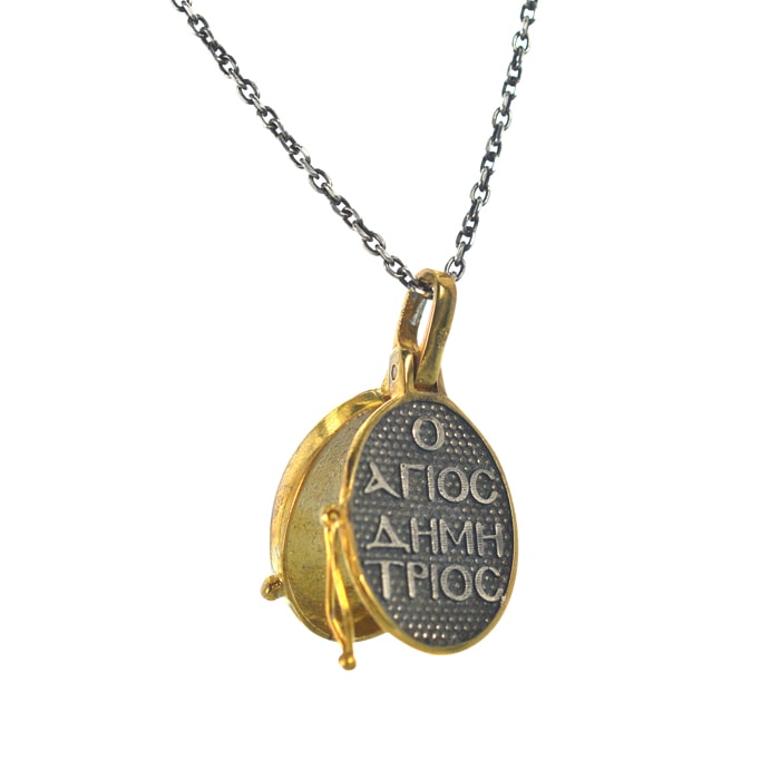 Ασημένιο 925 φυλαχτό με τον Άγιο Δημήτριο. Σκαλιστό μενταγιόν με υποδοχή για φυλαχτό, κατάλληλο για άντρες και γυναίκες. Επιλέξτε την επιλογή ‘με αλυσίδα’ για να πάρετε μαζί και την αλυσίδα 40 εκατοστών (+5 εκατοστά επέκταση).