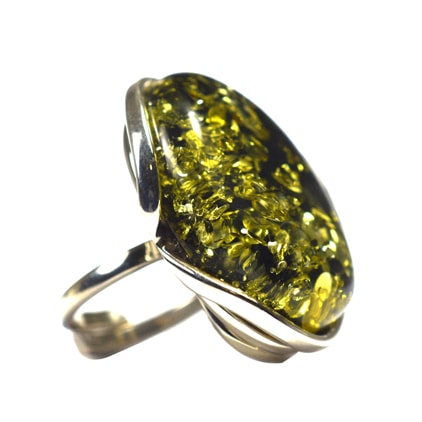 Ασημένιο 925 χειροποίητο δαχτυλίδι με πράσινο κεχριμπάρι