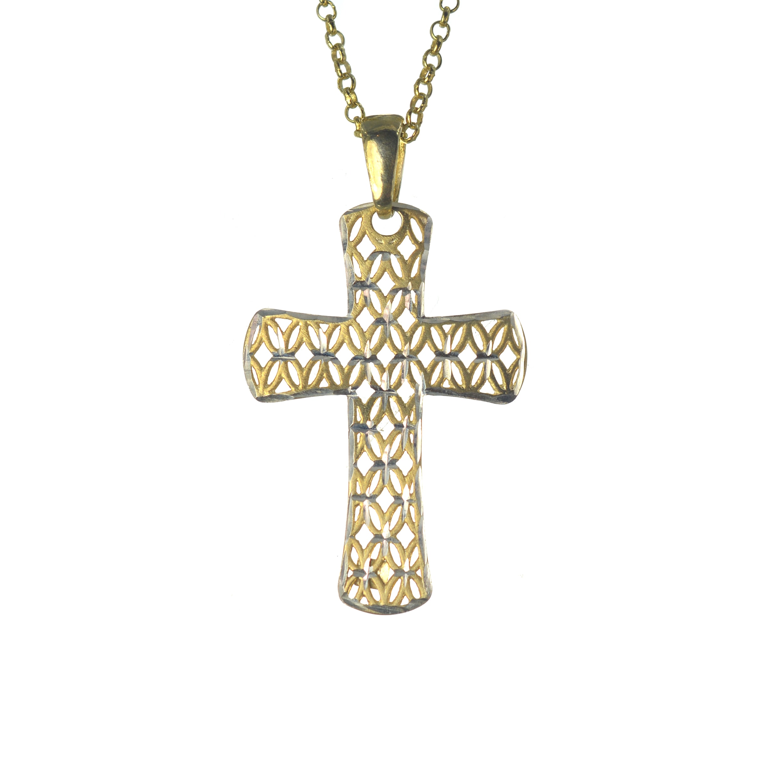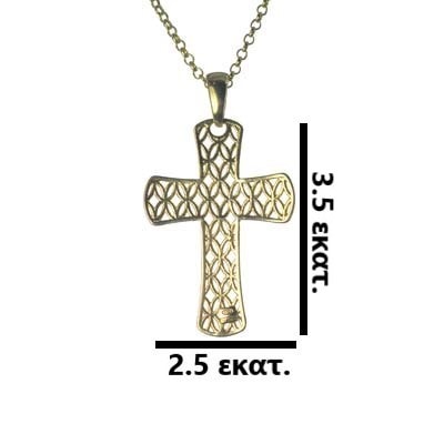 Ασημένιoς 925 σταυρός με διακριτικό σχέδιο και μερική επίστρωση χρυσού 14Κ. Κάντε κλικ στην επιλογή “με αλυσίδα” για να πάρετε μαζί και την αλυσίδα 40 εκατοστών (+5 εκατοστά επέκταση).