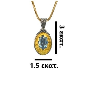 Επιχρυσωμένο 925 βυζαντινό κολιέ με ακουμαρίνα. Χειροποίητο μενταγιόν από ασήμι 925 και επιχρύσωση 14Κ. Κομψό και διαχρονικό, αυτό το μενταγιόν είναι το ιδανικό δώρο για εσάς ή κάποιο αγαπημένο σας πρόσωπο.