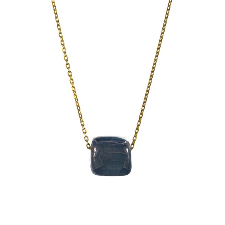 Επιχρυσωμένο 925 κολιέ με μπλε χάντρα με τα νερά του ! Μοντέρνο κολιέ με μαύρη κεραμική χάντρα κύβος 38 εκατοστών και με επέκταση 7 εκατοστών ! Ευκολοφόρετo κολιέ για καθημερινή χρήση με μοντέρνο σχεδιασμό !