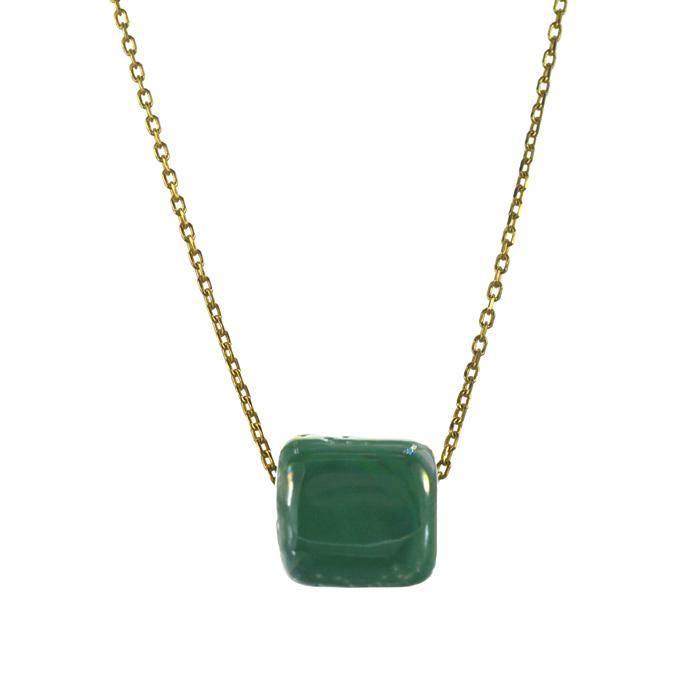 Επιχρυσωμένο 925 κολιέ με πράσινη χάντρα ! Μοντέρνο κολιέ με μαύρη κεραμική χάντρα κύβος 38 εκατοστών και με επέκταση 7 εκατοστών ! Ευκολοφόρετo κολιέ για καθημερινή χρήση με μοντέρνο σχεδιασμό !