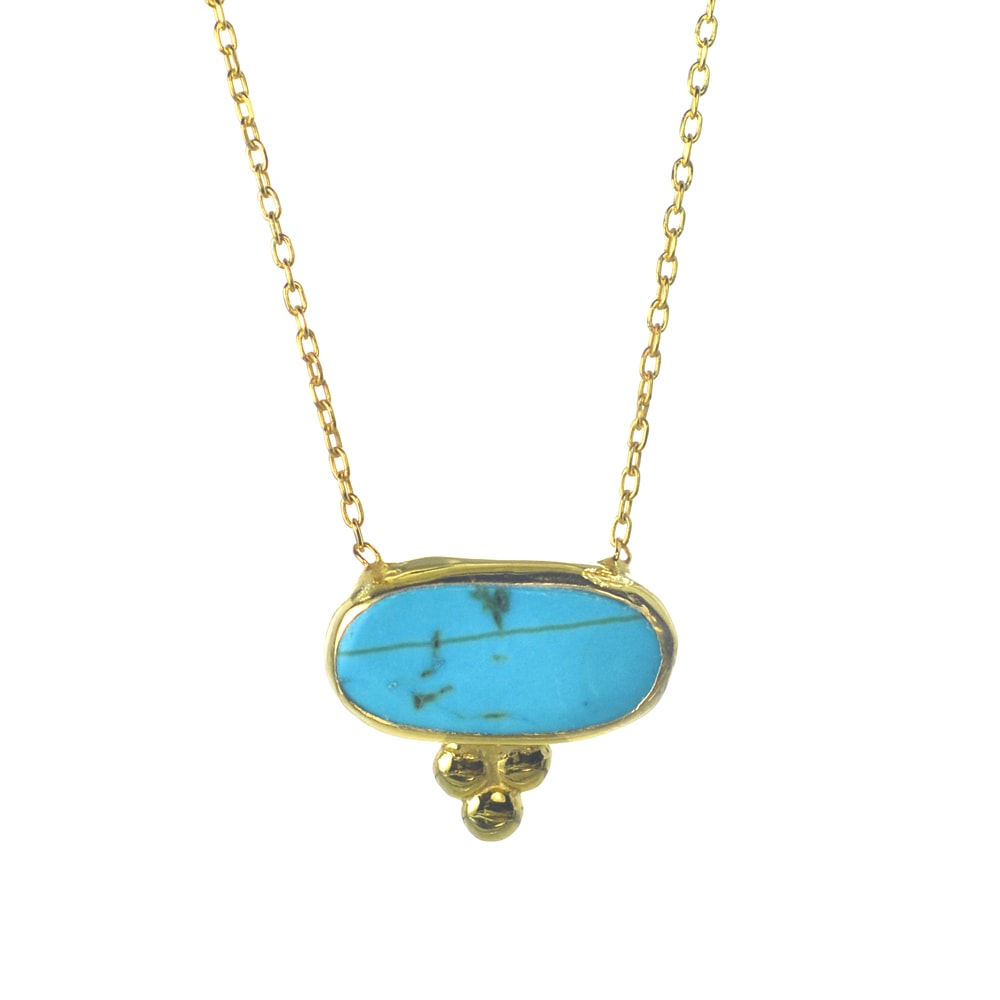 Επιχρυσωμένο κολιέ με τιρκουάζ από ασήμι 925. Μπορείτε να το φορέσετε μόνο του ή μαζί με άλλα για το απόλυτο layered look του καλοκαιριού. Ανακαλύψτε σήμερα όλη τη συλλογή στην ιστοσελίδα μας.