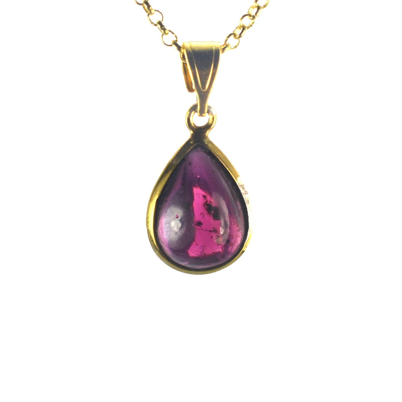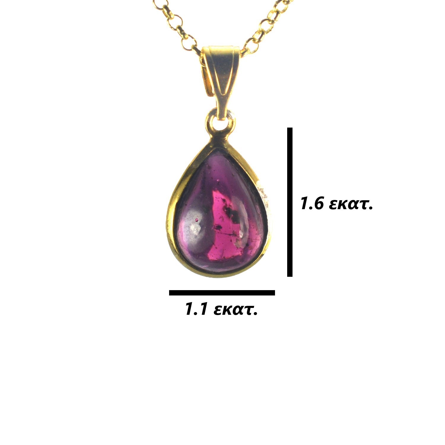 Επιχρυσωμένο 925 μενταγιόν δάκρυ με γρανάδα. Το βαθύ μοβ/μπορντό χρώμα της πέτρας, η λάμψη του επιχρυσωμένου ασημιού και η λιτή σχεδίασή του καθιστούν αυτό το κολιέ την ιδανική επιλογή για κάθε περίσταση. Ανακαλύψτε όλη τη συλλογή και χαρίστε το ομορφότερο δώρο στον εαυτό σας ή σε κάποιο αγαπημένο σας πρόσωπο. Κάντε κλικ στην επιλογή “με αλυσίδα” για να πάρετε μαζί και μία αλυσίδα 45 εκατ. (+5 εκατ. επέκταση).